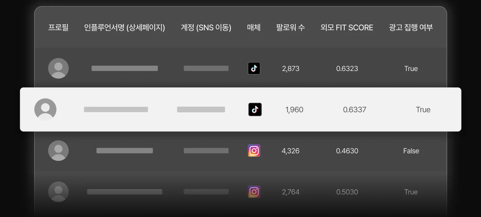 이를 통해 사람의 직관만으로는 놓치기 쉬운 ‘잠재력 있는 인플루언서’까지 포함해 효율적인 후보군을 선정할 수 있습니다.